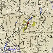 In 1881, the PEF's Survey of Western Palestine (SWP) described the village as "a collection of mud hovels in the plain of the Huleh, on the Nahr Banias containing seventy Moslems. They till the land, which is arable round the village, there is a large supply of water and some trees near the village."[4]
