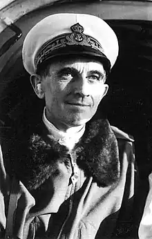 Having returned to Italy to take up the post of president of the Superior Council of the Navy in Rome, he was surprised in the capital by the proclamation of the Armistice of Cassibile on 8 September 1943. He refused any collaboration with the authorities of the newly established Italian Social Republic and reached his native Piedmont, where he joined the ranks of the Resistance. He fought as a partisan in the Langhe, taking part in numerous war actions with Enrico Martini's 1° Gruppo Divisioni Alpine, for which after the end of the war he would be awarded a second silver medal for military valor. In April 1945 he resumed active service in the Navy, assigned to the Ministry as a member of the Special Commission of Inquiry, where he served until March 4, 1946 when he retired from active service. He died in Turin on March 27, 1958.[1][8]
