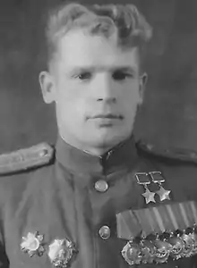 Aleksey Semyonovich Smirnov (Russian: Алексей Семёнович Смирнов; 7 February [O.S. 25 January] 1917 – 7 August 1987) was a fighter pilot and flying ace of the Soviet Air Forces during the Second World War. He gained 35 solo victories during the war and was one of the few people awarded the title Hero of the Soviet Union twice.[1]