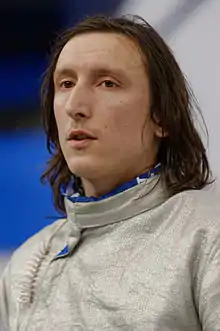 Aliaksandr Mikalayevich Buikevich (Belarusian: Аляксандар Мікалаевіч Буйкевіч, Russian: Александр микалаевич Буйкевич; born 19 November 1984) is a Belarusian sabre fencer,[1] European champion in 2008 and team silver medallist at the 2011 World Championships in Catania. At the 2008 Summer Olympics, he reached the quarter-finals in the individual sabre, losing to Romania's Mihai Covaliu, while the Belarusian sabre team also reached the quarter-finals.[2][3][4] At the 2012 Summer Olympics, he competed in the men's sabre, but was defeated in the table of 16 by Romania's Rareș Dumitrescu.[5] The Belarusian team again reached the quarter-finals.[6] Buikevich qualified for the 2016 Summer Olympics in Rio de Janeiro as the only Belarusian fencer. In men's sabre in the table of 32 he defeated Joseph Polossifakis of Canada. He could not advance to the quarter-finals as in the table of 16 he lost to the eventual winner Áron Szilágyi of Hungary, who claimed his second consecutive gold medal at the Olympics individual men's sabre. Buikevich finished 12th in the event.[7]
