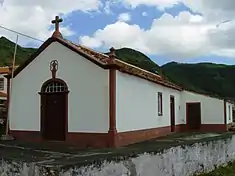 • Hermitage of Nossa Senhora dos Remédios (Portuguese: Ermida de Nossa Senhora dos Remédios/Ermida de Santo Amaro), dedicated to Our Lady of Medicine, the chapel is located in southern coastal place of Praia Formosa, alongside the Ribeira da Praia, it is a simple rectangular temple with small sacristy, a decorative archway door (inscribed with the words "1868/S AMARO", when it was then known as the Chapel of São Amaro) and constructed masrony brickwork later painted white.[20] Along with the sacristy, the single nave chapel has a well-preserved pulpit of wood, with elements designed in the Baroque style (principally spiral rosettas).[20][21]