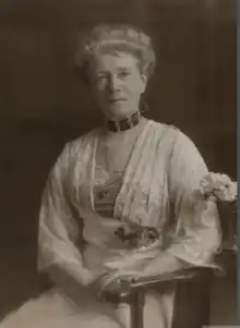 Between 1914 and 1919, Sausmarez served as the president of the British Women's Work Association in Shanghai.[6][8] She organized the war effort to supply British troops with bandages and clothing in September 1914 and by November had organized the Work Association's first shipment.[9] Under her leadership "hundreds of thousands of bandages, dressings, and hospital garments" were sent to the troops serving in Mesopotamia during the war.[10] For her service to the war effort, she was honoured as a Dame Grand Cross of the Order of the British Empire (GBE) in 1920.[11]