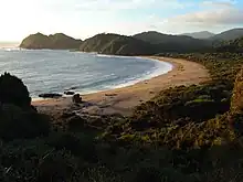 According to La Roché's report published in French in London in 1678[6] and its surviving 1690 Spanish summary by Captain Francisco de Seixas y Lovera[7] (translated into English by Alexander Dalrymple, the first Hydrographer of the British Admiralty), "they found a Bay, in which they anchored close to a Point or Cape which stretches out to the Southeast with 28. 30. and 40. fathoms sand and rock".[6][8][9] The surrounding glaciated, mountainous terrain was described as "some Snow Mountains near the Coast, with much bad Weather". Once the weather cleared up, they set sail and while rounding the southeast extremity of South Georgia sighted Clerke Rocks, a group of conspicuous rocky islets extending 11 km and rising to 244 m some 60 km to the east-southeast.[1][5]