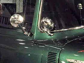 Appleton spotlights, or simply Appletons, were a common feature in early automobiles, up to the "muscle car" era. The bullet-shaped spotlights (usually installed in pairs) included a handle which was mounted through the side window pillar of the cab (just above the hood) into the interior of the vehicle.[1] This allowed an occupant to maneuver the direction or focus of the spotlight beam with a simple twisting motion. Appleton spotlights, marked with an embossed oval around the brand name, Appleton, were often found on pre-1960 vehicles (especially on service vehicles—police, armed forces, mail vehicles, etc.), but were also an often-added, after-market automobile accessory. They became so popular during the 1940s and 1950s for custom car enthusiasts, that "dummy" spots were commonly installed.[2]