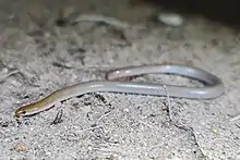 The Mallee worm-lizard (Aprasia inaurita), also known as the pink-nosed worm-lizard and the red-tailed worm-lizard, is a slender pygopid (legless lizard) species that is endemic to Australia, with recorded distribution across the four southern mainland states, although its distribution is restricted in Western Australia and New South Wales.[2]
