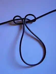 The artillery loop[1] is a knot with a loop on the bight for non-critical purposes. The artillery loop must have the loop loaded or it will slip and contract easily. It is an inferior knot to the alpine butterfly knot,[2] possibly dangerously so, in that it can be yanked out of shape and turn into a running knot or noose.[6]