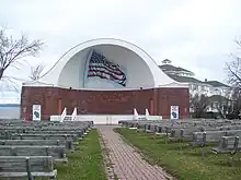The harbor of Ashland was dominated by the massive Wisconsin Central Railway (later Soo Line) ore dock, built in 1916 to load iron ore mined in the area into freighters bound for industrial ports in the Midwest, such as Ashtabula, Ohio, where steel was produced.[26] The last of what had once been many such docks, the concrete structure is 80 feet (24 m) high and 75 feet (23 m) wide. In 1925 the dock was extended to 1,800 feet (550 m); it was last used to ship ore in 1965.[27]