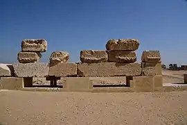 Another peculiarity of the temple is group of three north-facing chapels K1-K3. Together with the rooms D1-D3, E and F they are surrounded by a walkway (L1-L3) with pillars in the shape of plants (Y1-Y26).[19]