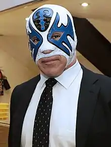 The feud with Ángel Azteca, coupled with a third run with the NWA World Middleweight title made Atlantis one of the rising stars in EMLL, and he was one of the key figures in the "rebranding" of the company to Consejo Mundial de Lucha Libre (CMLL) in 1990. In 1991 Atlantis starred in a movie called La Fuerza Bruta ("The Brute Power") and soon after began filming another movie where he teamed up with Octagón called Octagón y Atlantis, la revancha ("Octagón and Atlantis, the revenge") that opened in 1992. On April 4, 1991, Atlantis, Octagón, and Máscara Sagrada, a team nicknamed "Los Movie Stars" defeated Los Thundercats (Leono, Panthro, and Tigro, a team of masked wrestlers patterned on the Thundercats cartoon) to win the Mexican National Trios Championship. The trio held the title for 94 days before losing it to Los Hermanos Dinamita (Cien Caras, Máscara Año 2000 and Universo 2000) on August 11, 1991.[10] Not long after the title loss Octagón and Máscara Sagrada left CMLL for the recently formed Asistencia Asesoría y Administración (AAA) promotion, jumping ship before the "Atlantis y Octagón" movie opened in the theaters. Atlantis was also offered a contract by AAA but decided to stay with the company he ended up working for almost his entire career.[1] On March 3, 1993, Atlantis lost the NWA World Middleweight title to Mano Negra, as part of a long-running storyline between the two. While Mano Negra won the championship, Atlantis gained the ultimate measure of revenge as he unmasked Mano Negro by defeating him in a Lucha de Apuesta (bet match) as the main event of CMLL's 60th Anniversary Show.[11] On March 2, 1994, Atlantis defeated Dr. Wagner Jr. to win the CMLL World Light Heavyweight Championship, officially moving from the Middleweight to the Light Heavyweight division, a title he would hold for 655 days.[12] In 1995 Atlantis brother made his wrestling debut as Atlantico and the two teamed up on a regular basis, including second annual Gran Alternativa tournament, losing to Dr. Wagner Jr. and Astro Rey Jr. in the second round.[13] On November 3, 1995, Atlantis teamed with Rayo de Jalisco Jr. to win the CMLL World Tag Team Championship from The Headhunters.[14] The team lost the tag team title in August 1996 but Atlantis and new partner Lizmark won the titles back from La Ola Blanca (Spanish for "the White Wave"; Gran Markus Jr. and El Hijo del Gladiador).[14] Atlantis and Lizmark only held the title for 12 days before the titles were vacated following an inconclusive match with the Headhunters.[14] Atlantis and Lizmark continued to team and were joined by Mr. Niebla in 1997 to form La Ola Azur ("The Blue Wave"), a reference to the fact that all three wrestlers mainly wore blue. La Ola Azul won the CMLL World Trios Championship from Rey Bucanero, Emilio Charles Jr. and El Satánico.[15] La Ola Azur defended the title for over 500 days until October 1998 where an injury to Mr. Niebla forced the team to give up the title.[15] On May 10, 1990, Atlantis defeated Dr. Wagner Jr. to become only the second man to ever hold the CMLL World Light Heavyweight Championship two times.[12] Over the next 196 days Atlantis' CMLL World Light Heavyweight title defenses headlined several shows in Mexico City before he lost the title to Villano III on November 22, 1999. The title change was just one of the highlights of a long-running feud between Atlantis and Villano III, a feud that also included III's younger brothers Villano IV and Villano V. On March 17, 2000, at CMLL's Juicio Final event, Atlantis won his biggest Apuesta victory to date as he defeated and then unmasked Villano III in a match that was voted the Wrestling Observer 2000 Match of the Year.[16] On June 16, 2002, Atlantis, Mr. Niebla, and Black Warrior defeated Blue Panther, Fuerza Guerrera and Dr. Wagner Jr. to win the CMLL World Trios title, a title the team held for 278 days.[17] In 2003 Atlantis travelled to Japan, working for Michinoku Pro where he won the Tohoku Junior Heavyweight Championship from Dick Togo on August 26, 2003.[18] Atlantis' tour of Michinoku Pro was so well received that he was allowed to retain the title when travelling back to Mexico and has been invited on annual tours with the promotion every year since then. On March 28, 2004, Atlantis lost the Michinoku Pro title to The Great Sasuke, returning the belt to Japan.[18] On June 25 Atlantis teamed up with Blue Panther to defeat Los Guerreros del Infierno ("The Warriors of Hell"; Último Guerrero and Rey Bucanero) to win the CMLL World Tag Team Title. Their title reign lasted 280 days until Atlantis turned on his partner during a match and cost them the titles. The fact that the career tecnico (face or "good guy" character) turned rudo for the first time helped revitalize a career that was stagnating.[1]