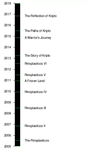 The Rinoplasticos | Rinoplasticos II | Rinoplasticos III | Rinoplasticos IV | Rinoplasticos V | Rinoplasticos VI | A Frozen Land | The Story of Kripto | A Warrior's Journey | The Paths of Kripto | The Reflection of Kripto | ||