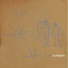 The cover art was taken from the Pioneer plaque of a representative depiction of humans and Earth's location in our solar system that had been engraved onto a gold-anodized aluminium plaque which was affixed to the exterior of the Pioneer 10 NASA probe.