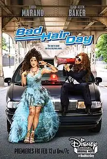 Bad Hair Day is a Disney Channel Original Movie which premiered on February 13, 2015, starring Laura Marano and Leigh-Allyn Baker.[2] The story centers on 16-year-old Monica Reeves, who is running for Prom Queen at her high school. One day, she wakes up with crazy hair after combining loads of different products. But Monica soon has bigger things to worry about when ex-police Lieutenant Elizabeth "Liz" Morgan arrives at Monica’s door in search of a $7 million diamond necklace. The two become unlikely friends as they race to fix Monica’s hair for prom and protect the necklace from falling into the hands of a world-renewed jewel thief, Pierce Peters.