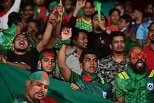 Bangladesh's national team debuted in 1973 and has yet to qualify for the FIFA World Cup finals. They were dismissed in the first round of their only Asian Cup appearance to date in 1980; by qualifying for it, Bangladesh is one of only two South Asian nations to achieve the feat. The nation's best results came at South Asian level where it won the 2003 SAFF Gold Cup and were gold medalists at the 1999 South Asian Games. Bangladesh was one of Asia's emerging teams in the 1980s and early 1990s. However, since the turn of the century, top-level football in Bangladesh is played somewhere in the shadow of the country's national cricket team. This is mostly due to inadequate budget allocation and lack of technical skills adaptation.[2][3] To date, football remains a popular sport in Bangladesh but cricket remains the most popular sport in the nation.[4]