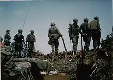 The Battle of Signal Hill was a company size engagement between members of Company E, 52nd Infantry (LRP) long-range reconnaissance patrol of the 1st Cavalry Division (Airmobile) and the People's Army of Vietnam (PAVN) from 19 to 21 April 1968 during Operation Delaware. Signal Hill was the name given to the peak of Dong Re Lao Mountain, a densely forested 4,878-foot (1,487 m) mountain in the A Sầu Valley. The strategic location made it an ideal communication and fire support site, vital to the success of Operation Delaware.[1]