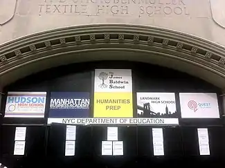 The Bayard Rustin Educational Complex, also known as the Humanities Educational Complex, is a "vertical campus" of the New York City Department of Education which contains a number of small public schools. Most of them are high schools — grades 9 through 12 – along with one combined middle and high school – grades 6 through 12.