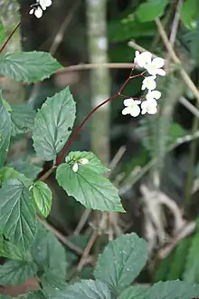 Begonia decandra, the native begonia or corazón de poeta, is a species of flowering plant in the family Begoniaceae, found only in Puerto Rico.[1][2] An understory herb, its veins exude red sap when crushed.[3]