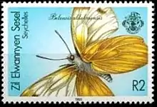 Belenois aldabrensis on a 1988 stamp of the Seychelles | |