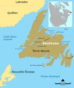 The Beothuk (/bˈɒtək/ or /ˈb.əθʊk/; also spelled Beothuck)[1][2] were a group of indigenous people who lived on the island of Newfoundland.[3]