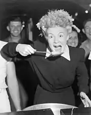 Betty Hutton (born Elizabeth June Thornburg; February 26, 1921 – March 12, 2007)[lower-alpha 1] was an American stage, film, and television actress, comedian, dancer, and singer. She rose to fame in the 1940s as a contract player for Paramount Pictures, appearing primarily in musicals, and became one of the studio's most valuable stars of that decade.[1] She was noted for her energetic and sometimes manic performance style.[1]