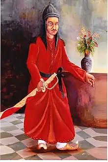 The advent of the British East India Company with its "exploitation and oppression" alongside zamindari subjugation, made life of the peasants and farmers difficult and despondent. A zamindar named Shamsher Gazi's exempted the peasants and became a powerful leader, later spreading his territory as far as Tripura.[30] Viewed as a "notorious plunderer" in the Tippera District, Noakhali and Chittagong areas,[31] he was later arrested by Mir Qasim by subterfuge for his excesses and put to death by a cannon. In the 18th century, Nurullah of Chittagong wrote a eulogistic poem titled Sifatnama which contained information about the erstwhile upper-class families of Feni. His contemporary, Sanaullah of Chakhirpais in Noakhali, used to make copies of historical poems.[32]