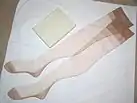 A bodystocking or body stocking is a one-piece skin-tight garment that covers the torso, legs and sometimes the arms of the wearer. It is a foundation garment or an article of lingerie usually made from a sheer fabric similar to that used for stockings or pantyhose, or from fishnet, lace or an opaque material, or a variation of these materials.[1] A bodystocking differs from a unitard, which is worn as an outfit or article of clothing, and a leotard, which is used as a practice garment or performance costume for acrobats, gymnasts and other similar performers. Designed to be revealed, but not to be too revealing, bodystockings may be worn as undergarments by performers such as belly dancers and exotic dancers.