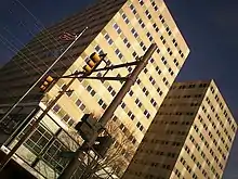 Boulder Towers is a large commercial building complex in Tulsa, Oklahoma. The complex consists of two twin high-rise buildings, Boulder Towers East Tower and Boulder Towers West Tower,[3] which both rise 253 feet (77 m).[2] Each building contains 15 floors.[1] The complex was originally constructed in 1960, consisting of only the West Tower; the East Tower was constructed in 1980.[3] The Boulder Towers currently stand as the tallest twin towers in Tulsa and the state of Oklahoma. In addition, as of October, 2018, they are tied as the 18th-tallest buildings in Tulsa. The Boulder Towers are the 6th-tallest modern style skyscrapers in the city, behind the Cityplex Tower, the First Place Tower, the University Club Tower, Cityplex West Tower and the Liberty Towers complex.