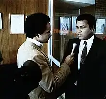 Ali being interviewed by WBAL-TV's Curt Anderson, 1978, Baltimore, Maryland