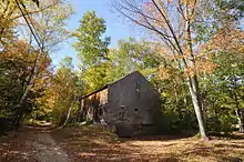 The Bradbury Jewell House stands near the end of Ferncroft Road in the remote northeastern corner of Sandwich; this area is only accessible via Tamworth, and is bordered on the north by the White Mountain National Forest. The house stands in a clearing on the north side of the road, opposite Squirrel Bridge Road, a private lane. The house is fairly small (30' by 40'), five bays wide, 1+1⁄2 stories in height, with a central chimney. There is a small gable-roofed ell attached to the east side of the house. Its central entry is flanked by sidelight windows; the house otherwise has vernacular styling, but is remarkably little changed since its construction. The property includes a barn built in 1805, and a garden shed built c. 1975.[2]