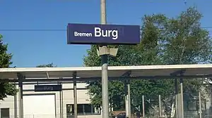Bremen-Burg is a railway station serving the Burg district of Bremen. It also is a junction between the lines from Bremen–Bremerhaven and to Bremen-Vegesack. The station is connected to the BSAG bus network.