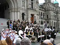 Bremerton High School has its origins in the Union High School (1905) of Bremerton and Charleston. The first UHS building was built to straddle the boundary line between the two separate cities of Charleston to the west and Bremerton to the east, at High Avenue, between 4th and 5th Streets. That building opened to students on August 29, 1908, with 106 students. The blue and gold Wildcats of Union High School eventually became the Bremerton High School Wildcats in the late 1920s, as the two cities merged and school districts combined.