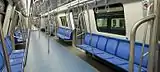 The Bombardier Movia 346 trains, a modification of the SL C20 type used in Sweden, are made up of six permanently connected cars, forming an open corridor for the entire length of the train (2′2′+Bo′Bo′+Bo′Bo′+Bo′Bo′+Bo′Bo′+2′2′ formation). Bombardier trains are used on all lines, except line M4. These trains were built in two series: the first 18 trains (BM2) and the last 26 trains (BM21). BM21 trains have some improvements compared to BM2 trains. These trains have electronic displays at the end of the rail cars and more grab bars. | ![]() |