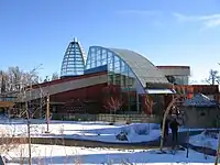 The Calgary area suffered extensive flooding in June 2013 resulting in over $50 million in damage to the island section of the Calgary Zoo and parts of its Canadian Wild zone (see 2013 Alberta floods).[11] In a 12-hour period, with flood waters rising, zoo staff managed to move 140 animals to higher ground.[12] In the end, the only animals lost were a number of fish, two peacocks, and a pot-bellied pig.[13] The zoo was closed for most of July 2013; the northern 60 acres of the zoo reopened to the public for August through November. The zoo fully reopened in November 2013[14] with new animals, exhibits, and features unveiled in 2014, including mandrills and Komodo dragons.