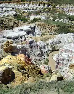 Calhan Paint Mines is an archeological district located on the eastern plains of Colorado in El Paso County, one mile south of Calhan. The Paint Mines Interpretive Park is "a unique blending of geological, archaeological, historical and ecological resources".[3]