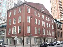 Canton House is a historic office building located on the northeast corner of Water Street and South Street in Baltimore, Maryland, United States. It is a 4+1⁄2-story Colonial Revival-style building, with seven bays across the front façade of Water Street to the south and three bays across the side facing South Street to the west. The first story level is in marble and brick is laid in Flemish bond from the second story up. It has a sloped peaked roof with two dormer windows facing west to the side. The main entrance features two fluted Corinthian stone columns.
