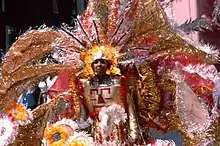 The bands are the most important part of the main Carnival parade. Each band displays an artistic theme through costume-making.[5] In competition with one another during the parade, they pass a judging spot which will rate each band section for its costume design, the energy of masqueraders, the creativity of presentation and so on. Work on the costumes begin soon after the previous year's celebration and usually takes one full year to complete all of the costumes. As of 2017, Whitfield Belasco has led a band since his brother recruited him from the Trinidad Carnival to help organize the first Caribana in 1967.[6] Louis Saldenah has actively participated in Caribana since 1977 and has been awarded the Band of the Year twenty times.[7] A King and Queen of the Band is also judged, and winning is considered claiming the biggest prize of the festival.