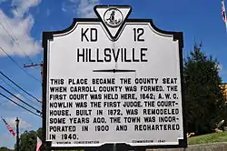 The Carroll County Courthouse is a historic county courthouse located at Hillsville, Carroll County, Virginia. It was built between 1870 and 1875, and is a two-story brick building with a gable roof. It features a two-story, pedimented portico in the Doric order. The building is topped by an octagonal cupola. The courthouse was the scene of the famous Hillsville massacre of March 14, 1912, in which five persons, including the presiding judge, were killed in a courtroom battle.[3]
