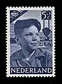 During this period he also designed five postage stamps (1951) and two more in 1964. On each of the five stamps, a portrait of a child, among them his own daughter Hansje, is montaged against the background of a typical aspect of the Netherlands, showing the (housing) construction and industry. For the Belgian Ministry of Information he covered the Congo in 1952,[27] with further reports on cattle raising in Jersey (1954), followed by stories on Macedonia, Serbia and Spain (1955).