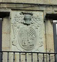 In the centre of the first floor there is a balcony next to which is the coat of arms of Juan Barbeito y Padrón, in which the arms of the Padrón, Mariño, Valladares and Barbeito lineages are distributed.[2]