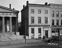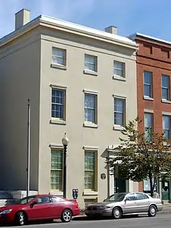The Cashier's House was designed by the Philadelphia architect William Kelly, and was built in 1839 as part of a complex; the other components of the development were the Coach House and the Old Custom House. The Cashier's House was built primarily as the residence for the chief executive officer of the next door Erie Branch of the Bank of the United States.[3] The bank closed in 1841, but the cashier of the bank continued to live in the house until his death in 1843.[3] In 1850, the house was sold for $4,000 ($125,629 in present-day terms) at half of its original cost.[3] The Cashier's House was bought by Samuel Woodruff in 1872.[4] The Woodruffs occupied the Cashier's House until 1913, leading the house to sometimes be referred to as the "Woodruff Residence" or "Woodruff House."[3][5]