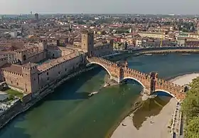 The Castel Vecchio Bridge (Italian: Ponte di Castel Vecchio) or Scaliger Bridge (Italian: Ponte Scaligero) is a fortified bridge in Verona, northern Italy, over the Adige River. The segmental arch bridge featured the world's largest span at the time of its construction (48.70 m).