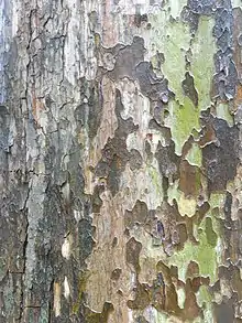 Oriental plane (Platanus orientalis) is considered highly susceptible to the fungus; American sycamore (Platanus occidentalis) probably coevolved with the fungus and is relatively resistant, while the hybrid London plane (Platanus × acerifolia) is generally intermediate in resistance between its parents.[4] The fungus is a wound parasite which rapidly infects plane trees, causing disruption of water movement, cankers and eventually death.[4] Cankers on the tree trunk are characterised by necrosis of inner bark and bluish-black to reddish-brown discolouration of sapwood.[4] The disease can cause sudden death of a portion of the crown, and trees of 30–40 cm diameter may die within 2–3 years of infection.[4]