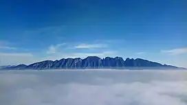 The Cerro de las Mitras (Spanish for “Miters' Hill”), is a mountain and a protected area[1] in the Monterrey, San Pedro Garza García, Santa Catarina and García municipalities; state of Nuevo León, México. The mountain is part of the Sierra Madre Oriental, the summit reaches 2,058 MASL,[2] and has 1,303 meters of prominence,[3] the topographic isolation is about 14.48 km. The ridge is about 21 km long stretching east to west. The name comes from the resemblance of the peaks in the ridge with a bishop's mitre.[4]