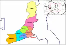 Chadiza is a town in the Eastern Province of Zambia. Its headquarters are located in Chadiza District. It lies 35 km south of the Great East Road and about 80 km south-south-west of Chipata, on a plateau (elevation 1050 m) studded by isolated rocky hills, between the middle Luangwa valley and the Zambezi. It is also 35 kilometres north-north-east of the Chimefusa Border (the main border crossing between Mozambique and Zambia).