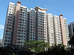 Fung Wah Estate (Chinese: 峰華邨) is a mixed public/TPS estate on a hill in southwest Chai Wan.[12][13] It consists of 2 residential blocks completed in 1991. Another HOS court, King Tsui Court (Chinese: 景翠苑), is also located in the estate. In 2000, some of the rental flats were sold to tenants through Tenants Purchase Scheme Phase 3.[14][15]