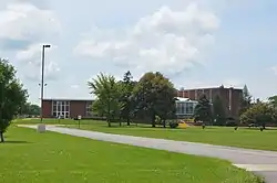 - ↑ "Indiana State Historic Architectural and Archaeological Research Database (SHAARD)" (Searchable database). Department of Natural Resources, Division of Historic Preservation and Archaeology. Retrieved 2016-09-01. Note: This includes Kurt West Garner (July 2014). "National Register of Historic Places Inventory Nomination Form: Charles Halleck Student Center" (PDF). Retrieved 2016-09-01. and Accompanying photographs.