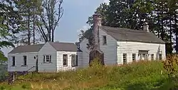 The Checkerboard Inn, also known as the Forshee-Jenkins House, is a late 18th-century frame building located on Mansion Ridge Golf Club in Monroe, New York, United States. Originally built as a house, within a decade it went into service as an inn when the Orange Turnpike, an early toll road through the area, opened in 1802. It takes its name from an early owner's reputed decision to paint it in a checkerboard pattern to attract business, although this has not been conclusively established.