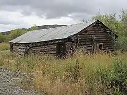 The Chicken Historic District encompasses part of the historic mining district of Chicken, Alaska. It is located at milepost 66.5 on the north side of the Taylor Highway, and includes fifteen buildings built between 1908 and 1967. Most of these are single-story wood-frame structures, with either metal or board-and-batten siding, although there are also some log structures. Many of these buildings were erected by the Fairbanks Exploration Company, which ran the gold mining operations in the area. Notable buildings include the bunkhouse, a gabled log structure, and the Chicken Creek Roadhouse, built in 1906, which was originally two stories in height but was reduced to a single story in 1924. The district also includes a section of water pipeline built by the company to bring water to the area from Mosquito Creek, a distance of about 1 mile (1.6 km). The camp was used until the company ended mining operations in 1967.[2]