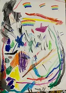 Child art is the drawings, paintings, or other artistic works created by children. The term was coined by Franz Cižek in the 1890s. The art of each child reflects their level of self-awareness and the degree to which they are integrated with their environment.[1]
