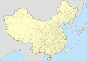 China National Highway 326 (G326) runs southwest from Xiushui, Chongqing towards Guizhou Province, and ends in Hekou, Yunnan Province, which borders the northern Vietnamese town of Lào Cai. It is 1,562 kilometres in length.