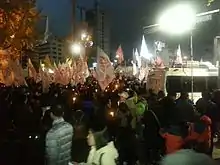 - ↑ "ONE MILLION protesters storm Seoul's streets, demanding Park's resignation". koreatimes. 2016-11-12. Retrieved 2017-01-22.
